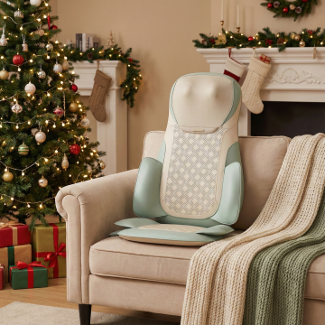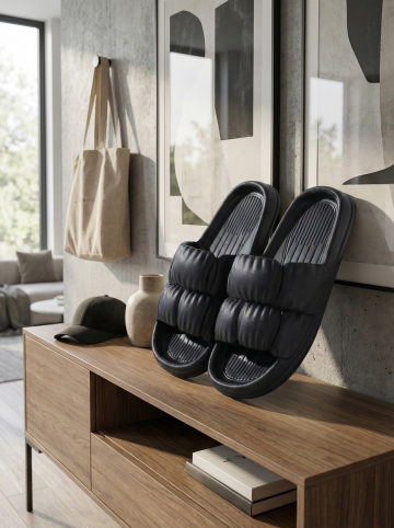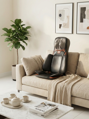产品精修优化,现代极简客厅空间,柔和自然光从窗外洒入,整体色调温暖中性。产品放在沙发上,地上灰色毛毯,搭配浅色抱枕,质地柔软舒适。背景墙为浅灰白色,挂有两幅简约艺术画。床头柜上摆放暖橙色台灯、书籍、香薰瓶和小装饰物。地面为浅木色地板,铺有浅色地毯与几何图案地毯。画面前景可见小茶几,上有书本与氛围灯。整体光线自然,构图平衡,以生活感和舒适氛围为主,风格温馨、现代、日系家居杂志感,中景构图,清晰高质感摄影棚布光。