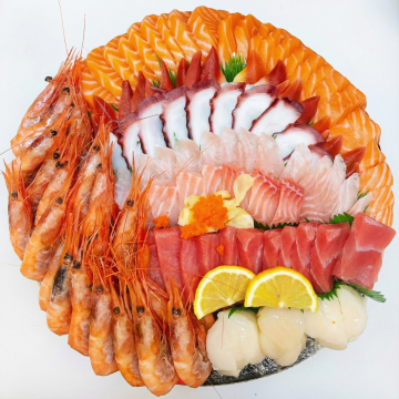 特写镜头下的三文鱼生鱼片,橙红色的鱼肉纹理清晰,表面泛着水润光泽,整齐地排列在铺有白色萝卜丝的白色瓷盘上,周围点缀着翠绿的黄瓜片和新鲜的欧芹叶,背景简洁干净,光线明亮柔和,突出食材的新鲜质感和自然色彩,营造出清爽、精致的日式料理氛围。