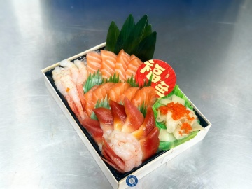 高清美食摄影风格,特写镜头下的三文鱼刺身,橙红色鱼肉纹理清晰,表面泛着新鲜油光,下方铺着晶莹剔透的白色萝卜丝,背景点缀着翠绿的黄瓜片和深绿色欧芹叶,整体色彩鲜亮明快,光线柔和均匀,突出食材的新鲜感和细腻质感,构图饱满,主体突出,营造出精致诱人的日式料理氛围。