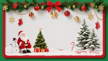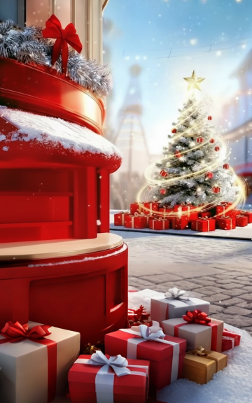 超写实风格圣诞场景,以红色和绿色为主色调,温暖柔和的侧光照明,前景是多个包装精美的圣诞礼物盒,包括红色带雪花图案、绿色带雪花图案、红色带金色条纹等款式,部分礼物盒上覆盖着少量蓬松的白雪,礼物盒周围点缀着松针和松果,背景是装饰有红色球形饰品和闪烁暖黄色串灯的圣诞树,树的枝叶上也有积雪,整体营造出温馨、喜庆、充满节日氛围的画面,不同画面的背景可替换为圣诞市场摊位、壁炉旁、挂满装饰的房间角落等具有圣诞元素的场景,保持相同的光影质感和色彩和谐度。