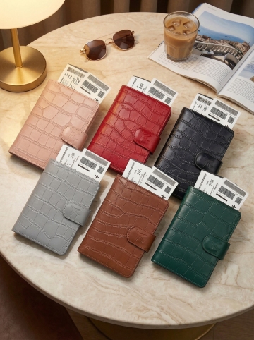 重拟物风皮质票夹,鳄鱼纹浮雕工艺,六色优雅呈现,实景感商务场景,尽显奢华与时尚格调。