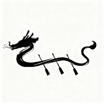 一幅中国传统水墨画风格的抽象墨韵作品,画面主体为一条蜿蜒流动的墨色巨龙,龙身由浓淡不一、层次丰富的黑色墨团构成,龙头墨色厚重深沉,龙尾向外逐渐晕染开灰黑色的渐变过渡,龙鳞边缘呈现出自然的毛边效果。巨龙周围散布着大小各异、形态不规则的墨点和飞溅状墨痕,有的墨点圆润饱满如星辰,有的呈细长的飞溅线条似龙须,有的则是模糊的墨晕若云雾,共同构成富有动感和节奏感的整体布局。背景为纯净的白色,凸显墨色的纯粹与张力,整体营造出空灵、洒脱、富有东方禅意的艺术氛围,展现出水墨在宣纸上自然晕化渗透的独特质感和写意精神。