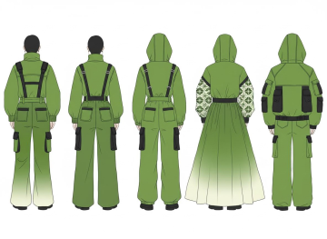 纯色背景上,同风格、同类目的多个不同穿搭女性人物元素系列组合,规整排布。每个女性人物均为侧后方视角,黑短发束起,身着不同款式的宽松版型服装,搭配相应的包包和鞋子,保持原图简约、自然、略带文艺的风格,画面整体色彩变换,人物姿态自然,服装材质细节清晰,整体布局整齐有序,视觉层次分明。