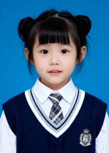 小朋友,女生,博士服穿搭,红色背景,干净的背景,证件照