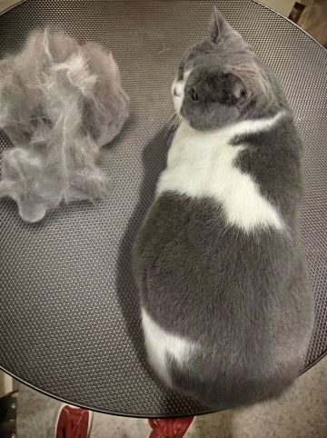 3D拟物风格,毛发生长细节逼真,虚实交融的实景感与柔和光影营造舒适氛围,虚拟现实与真实猫咪呼应,呈现科技与自然的和谐之美。