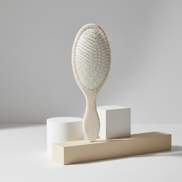 给图中的洗头刷旁边配一个它的独立包装(设计包装),包装表面印有该款洗头刷的图案及可定制logo的英文字样