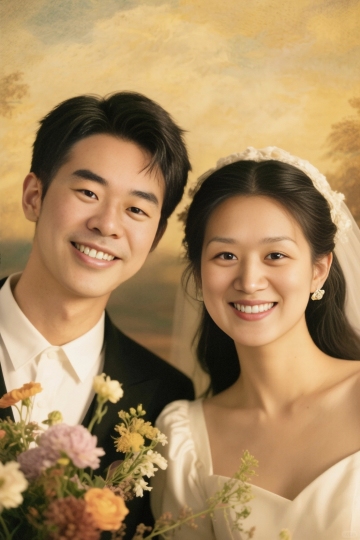 复古质感婚纱照,木质背景与自然光效交织,营造温暖柔和的视觉氛围,细腻呈现浪漫唯美的情感表达,光影流动中尽显优雅静谧的中式文艺格调。