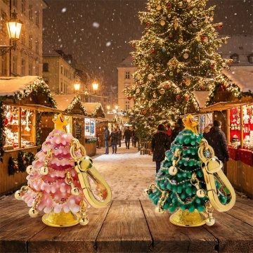 水晶质感圣诞树,3D重拟物设计,极繁主义装饰,光影交错,清透奢华,尽显优雅节日氛围。