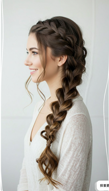 白色背景下,展示女性头部的发型特写,采用3D渲染技术,具有高度写实的质感,头发丝细节清晰可见,发丝顺滑有光泽,光影效果自然柔和,光源从上方照射,顶部头发有明显高光,底部发丝有细腻阴影。整体风格偏向产品展示图,注重头发的形态和材质表现,构图简洁,主体突出,仅保留头部两侧的耳朵部分,无其他多余元素。呈现一款时尚的棕色波浪卷发造型,发丝蓬松自然,卷曲弧度流畅,顶部头发饱满,两侧头发紧贴头皮向后梳理,形成优雅的半扎发设计,发尾自然垂落至耳后,展现出轻盈飘逸的质感。