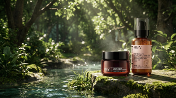 清新水彩风,现代简约设计,苾莱宝复活草面膜置于苔藓之上,营造舒适自然感。