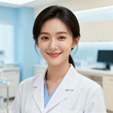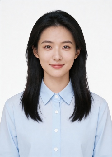 一位亚洲女性医生的证件照,她穿着洁白挺括的医生白大褂,内搭浅蓝色衬衫,双臂自然交叉于胸前。她的头发梳理得整洁利落,露出光洁的额头和温和的面容,嘴角带着亲切自然的微笑,眼神明亮有神,充满专业与亲和力。背景为纯白色,光线均匀柔和,突出人物主体,整体画面简洁干净、专业正式,符合证件照的规范和职业形象。