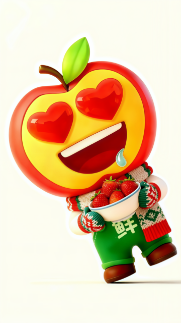 看到一张薯片包装袋货架的图,于是尝试了生成苹果货架图,尝试了10张生成,最终调了效果较不错的图,不过还能继续优化让苹果内部的货架呈环装排列~~