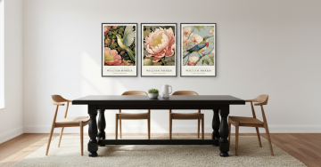 这是一套3联装饰画,不用做抠图处理,不改变装饰画的宽高比,装饰画框架颜色保持不变,这款商品在美国市场销售。主要用户群体是时尚女性,帮我生成5张场景图,分别悬挂在欧式客厅白色真皮沙发后空白墙壁、欧式黑色餐桌后方墙壁、欧式绿色办公桌上方墙壁、白色书房书柜旁边大面积墙壁、欧式绿色休闲椅旁边空白墙壁、客户群里是年轻时尚女性,墙壁颜色可以是绿色,白色或其他与画的颜色搭配的颜色,空间具有时尚感觉,墙壁颜色要与画的主色调搭配,应用与美国市场,要确保所生成的场景图的尺寸为2000*2000像素,生成场景图清晰,色彩搭配和谐,画面是白天白光自然光线,并考虑光影效果,一张一张生成,生成场景图的尺寸为2000*2000