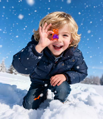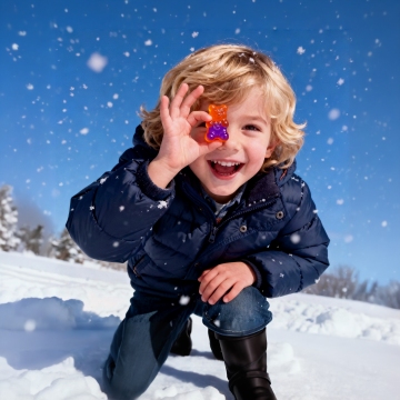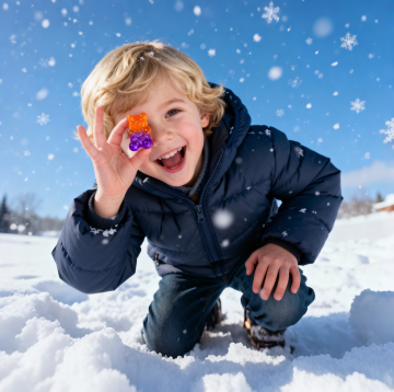 实景感与温馨感交织的冬日圣诞市集,孩童嬉戏雪球,光影斑驳,彩灯闪烁,轻拟物风点缀节日氛围,清新柔和中透出质朴喜庆。