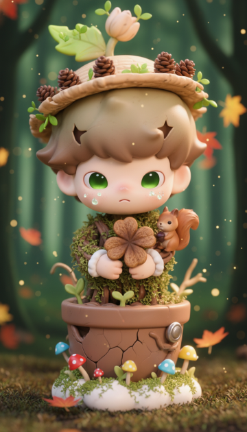 帮我再次生成由植被组成,身材矮小,可爱,ip