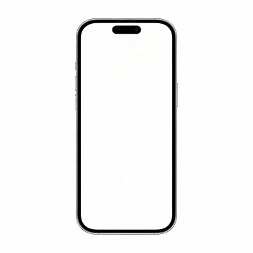 一个现代智能手机的正面视图,采用极简的线条艺术风格,黑色细轮廓勾勒出手机的圆角矩形机身,屏幕为纯白色,顶部中央有一个小的黑色刘海区域,包含前置摄像头开孔,机身侧面有简单的按键线条,整体构图简洁、对称,背景为纯白色,呈现出干净、简约、科技感的视觉效果,没有任何多余的装饰元素和文字信息。