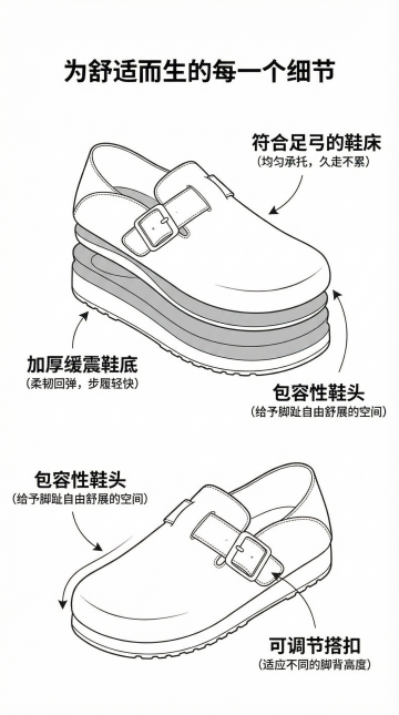 视觉: 左半部分:用简约图标展示护理要点(如:用专用刷清洁反绒,勿暴晒等)。右半部分:清晰的尺码表(建议对照国际码/欧码/脚长cm),并附上一张“如何正确测量脚长”的示意图。 文案: 长久陪伴,需要悉心对待。附上真诚的穿着提示:“新鞋初期建议短时间穿着,待鞋床逐步适应您的脚型后,将获得无可替代的贴合感。”