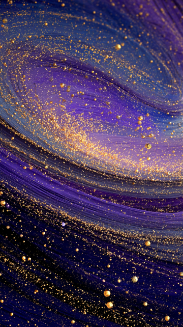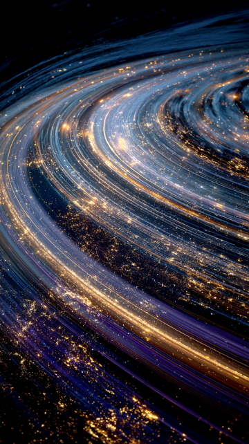 Abstract cosmic landscape, swirling concentric bands, ultramarine and amethyst hues with luminous golden accents, pointillist highlights, chiaroscuro lighting, depth of field, high resolution.