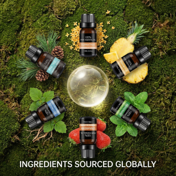 中间可以生成一个精油泡泡或者精油水滴,背景换为深绿色,精油瓶可以正立着摆放