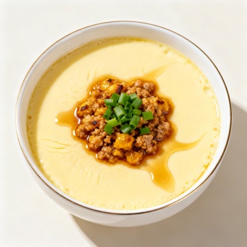 实景感与柔和光影交织,中式蒸蛋呈现轻拟物风质感,液态光泽与水彩般细腻纹理相融,清新雅致中透出舒适优雅,尽显传统美食的温润之美。