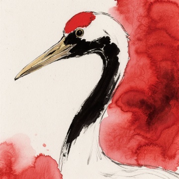 中国风背景,融合工笔与写意技法,淡彩水墨风格,以朱砂红与靛蓝为主色调,辅以鎏金点缀,远山如黛层叠起伏,近水含烟波光粼粼,空中仙鹤翩跹,水面浮萍点点,背景融入篆刻印章与祥云纹样,整体构图采用S形视觉引导线,营造古典雅致又不失灵动的意境