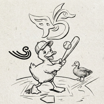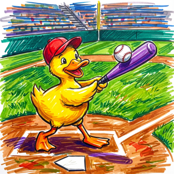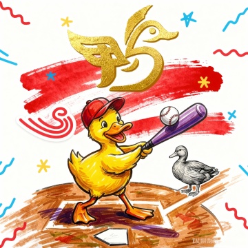 粘土风3D卡通小鸭,拟人化棒球手,可爱感十足,赛场氛围生动。