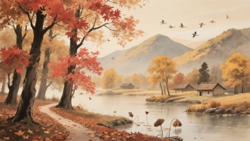 水墨风插画,古典荷塘梦幻场景,锦鲤游弋,中式美感尽显。