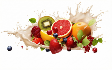 纯白色背景上,六个水果元素规整排布成系列素材集合,每个水果都以高度写实的摄影风格呈现,具有清晰的纹理细节、自然的光影过渡和高饱和度的色彩。左侧从上到下依次为:半个牛油果,果核完整,表面光滑的绿色果皮带有细密凸起,切开的果肉呈现淡黄绿色,一颗金黄色的蜂蜜滴落其上,蜂蜜具有透明的光泽和粘稠的质感;一个完整的蓝莓,深蓝色的表皮带有自然的果粉,顶部有细小的果蒂,球体饱满且富有弹性。右侧从上到下依次为:一个被切开的橙子,橙皮呈现鲜艳的橙黄色,带有明显的凹凸纹理,果肉瓣清晰可见,颗粒饱满,汁水欲滴;一个草莓,鲜红色的果实表面布满黄色的籽粒,顶部绿色的叶子呈现锯齿状,果实底部微微内凹;一个猕猴桃,被切成两半,棕色的果皮上覆盖着细密的绒毛,绿色的果肉中分布着黑色的籽粒,截面光滑;一个柠檬,一半被切开,黄色的果皮光滑且带有油点,果肉呈现淡黄色,白色的筋络清晰可见。所有水果元素保持统一的光照方向,阴影自然柔和,整体构图平衡对称,每个水果都占据相似的空间大小,共同营造出清新、健康的视觉氛围,具有强烈的设计感和信息传达效率,适合作为健康食品或饮品的宣传素材。