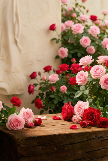 一张由大量盛开的粉色玫瑰花组成的无缝背景墙,玫瑰花花瓣层次丰富,色彩从柔和的浅粉到饱满的深粉渐变,每一朵玫瑰都具有清晰的纹理和自然的形态,其间点缀着深绿色的玫瑰叶子,整体呈现出极高的写实摄影质感,光线明亮柔和,从上方均匀洒下,为花瓣边缘带来细腻的高光,阴影部分过渡自然,营造出温馨浪漫的氛围,画面构图饱满,玫瑰花紧密排列,形成视觉冲击力强的花卉背景。
