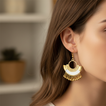 六款同系列黄金首饰在纯白色背景上呈规整排布,保持高分辨率3D渲染的写实风格,展现出一致的金黄色泽、细腻的金属质感、精致的镂空雕花工艺以及柔和的高光与阴影效果。每件首饰均具有光滑的表面处理和精湛的细节刻画:包括一款镶嵌圆形宝石的花朵造型吊坠项链、一对镂空藤蔓花纹的耳环、一枚带有几何纹路的戒指、一条简约光面的手链、一个精致的蝴蝶结造型胸针以及一款复古钱币设计的吊坠,整体构图清晰,突出黄金材质的奢华感与首饰的立体感。