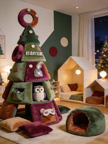 软3D风圣诞树造型玩屋,融合面料质感与卡通元素,温馨梦幻,萌趣十足,营造舒适可爱的节日氛围。