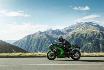 一辆鲜红色的运动型摩托车,车身线条流畅,带有流线型整流罩和锐利的前大灯,停在一条空旷的沥青道路中央,道路两旁是茂密的树木,阳光透过树叶缝隙洒下温暖的金色光芒,形成斑驳的光影效果,整体画面呈现出强烈的动感与自然光影的和谐美感,具有高度写实的摄影质感,背景营造出一种开阔、自由且充满力量的氛围。