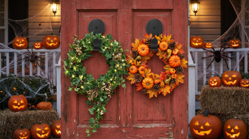 以图中的前门花环挂钩为元素,物体主体特征不变,设计6张跟前门花环挂钩有关的图,比例 16:9