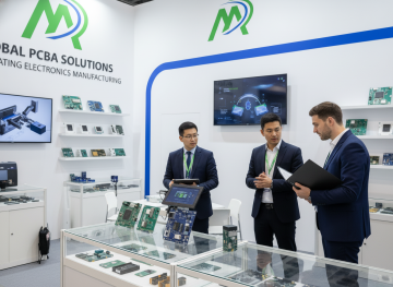 超写实3D渲染风格的科技感背景,以深邃黑色为主色调,中央是一枚棱角分明、层层叠叠的蓝色发光芯片,芯片表面有精密的金属触点和方形核心,四周环绕着复杂的黑色电路板,电路板上布满细小的银色电子元件、金色和蓝色的发光线路及光点,整体呈现出强烈的金属质感与科技光泽,光线从芯片底部和边缘发出柔和的蓝色光晕,照亮周围元件并形成细腻的阴影,营造出神秘而高端的未来科技氛围,画面构图紧凑,细节丰富,光影对比鲜明,充满赛博朋克式的精密与炫酷感。
