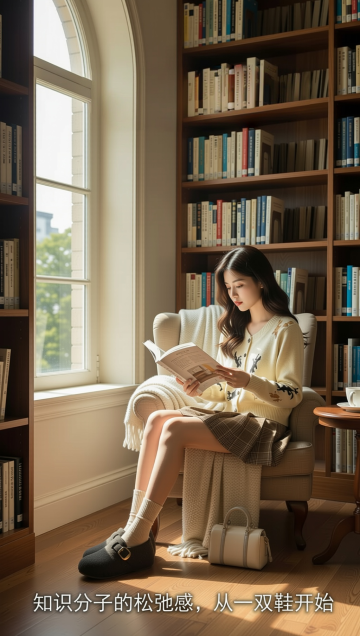 2.在自家阳台,蜷在扶手椅里,盖着毯子看书,双脚穿着产品踩在毛绒地毯上。
