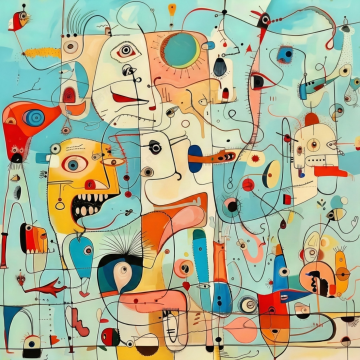 简笔画风格,黑白线条手绘,充满童趣的卡通图案无缝排列,包含多种可爱角色:大眼睛的方形机器人、戴围巾的圆形生物、长耳朵兔子、微笑星星、穿裙子的小女孩、圆脸蛋猫咪、三角身体外星人、乌龟、青蛙、云朵、花朵、爱心、感叹号、问号等元素,线条粗犷流畅,造型简约夸张,整体呈现轻松活泼、充满想象力的涂鸦氛围,所有图案紧密排列无明显留白,构成丰富有趣的图案背景。