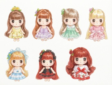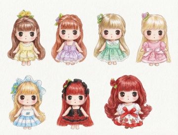 梦幻粉色系动漫少女,水彩晕染搭配描边风线条,手账风格装饰元素,可爱甜美元素满溢,尽显童话浪漫感。