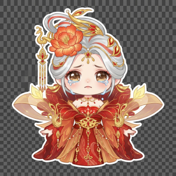 梦幻国潮插画风,可爱嫦娥抱玉兔,中秋佳节拟人设计。