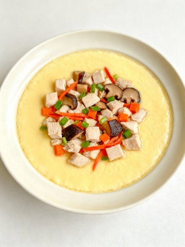 鱼肉、鸡蛋、鸡肉、豆腐、牛奶的早餐