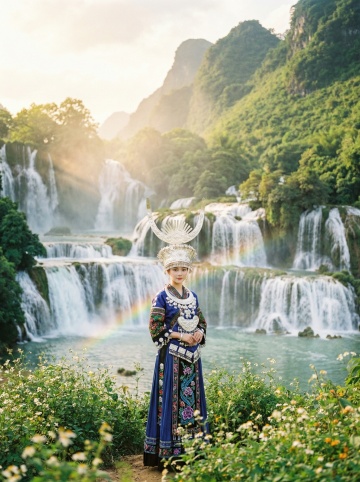 清新自然的瀑布实景,水彩风印象画派手法,展现生机盎然的绿色世界。