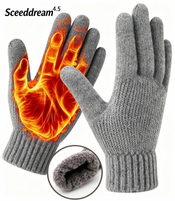 一对欧美白人情侣,男生戴着图中黑色的手套,女生戴着图中灰色的手套,两人站在户外的雪地上,天空在下小雪,两人捧着手接雪