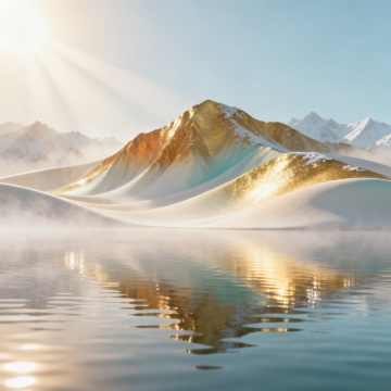 未来感与科技感交织的虚拟自然景观,晶莹剔透的玻璃风冰山在光影中展现极简主义的体积感与3D立体层次。