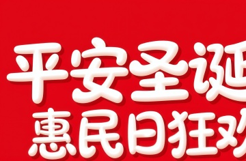 喜庆感十足的圣诞主题设计,采用卡通感与大字风结合,扁平化配色搭配描边轮廓,几何元素点缀,塑料质感提升视觉层次,营造欢乐节日氛围。