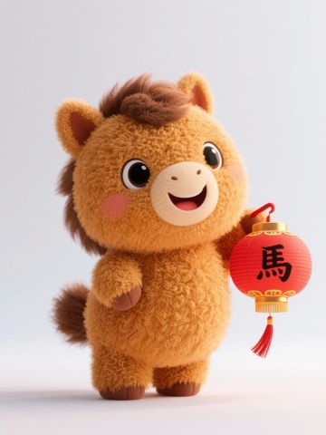 软3D毛绒风格,卡通童趣女孩骑红马,喜庆春节元素环绕,粘土质感与毛发生长细节融合,营造温暖可爱的节日氛围。