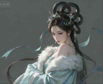 古典中式美人,工笔与重拟物结合,水彩光影晕染,衣袂飘逸,尽显唯美女神的优雅梦幻之姿。