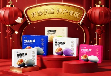 扁平风卡通包装,拟人蛋黄角色萌趣互动,双色设计突出低糖健康理念,印刷风文字强化促销信息,整体充满可爱感与节日喜庆氛围。