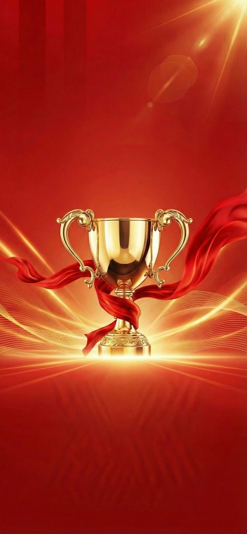 白色背景,奖杯都具有高度写实的3D质感,金属光泽细腻,高光和阴影过渡自然,其中一个金色奖杯带有飘逸的红色缎带,整体构图均衡,视觉层次分明,营造出庄重而荣耀的氛围。