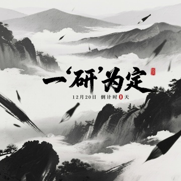 帮我生成一张竖向海报,主题为考研加油,要有时间12月20日,倒计时0天,主题为武侠水墨风