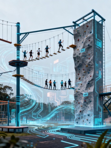 请生成一张成年人爬树比赛的图