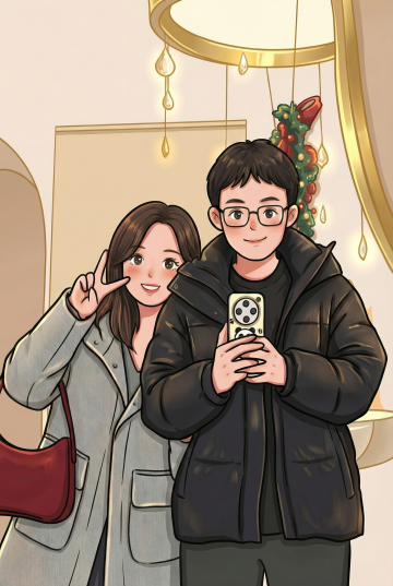 手绘感Q版动漫风格,线条圆润流畅,色彩明快柔和,画面中有两个Q版人物,左边是高清美女,穿着高领羊绒衫,气质优雅高贵,右边是高清帅哥,穿着高领羊绒衫,气质优雅高贵,背景是寒风场景,有飘动的发丝和衣角,整体氛围温馨又带点冬日的清冷感
